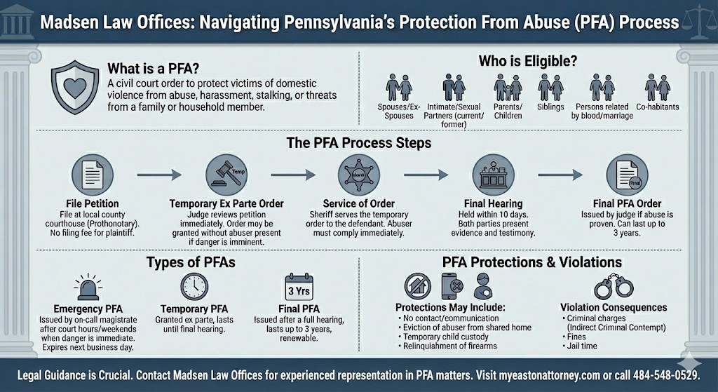 Contact Madsen Law Offices in Easton for expert guidance and robust representation in PFA contempt cases, ensuring your rights are protected in these crucial legal proceedings.